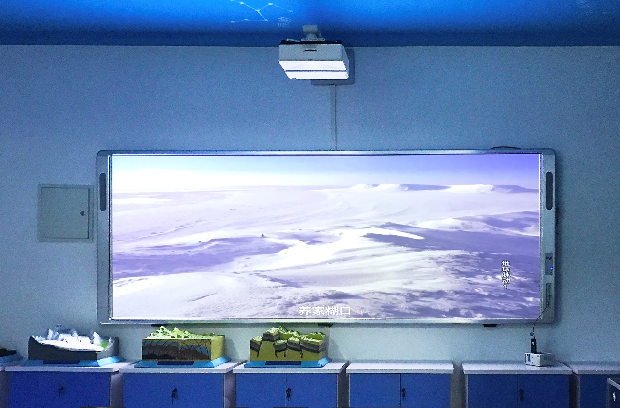 數(shù)字星球系統(tǒng)是當前地理教室建設的核心設備,它能從平面到立體、一球變多 球、靜 止到動態(tài)、展示過去 、現(xiàn)在 、將來地理變化信息,為學生提供身臨其境的教學情境,營造濃郁的學科氛圍。