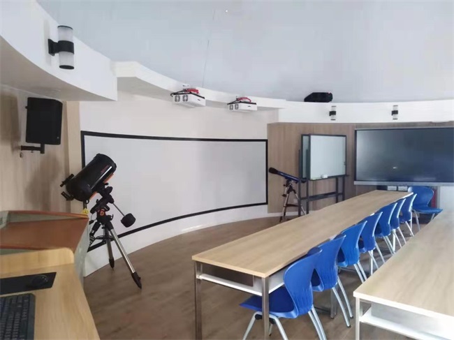 除數(shù)字天象儀外,天象館中還配備了環(huán)幕示教系統(tǒng)、多媒體球幕投影演示儀、天文望遠鏡、地形地貌模型、多種礦物和土壤標本等輔助教具,使天象館也能勝任普通地理教學的需求。