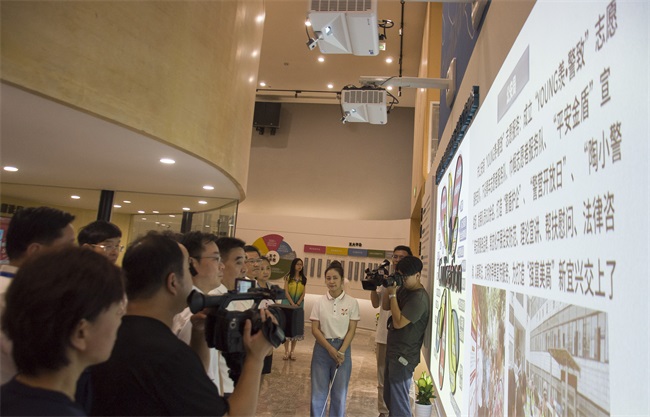 3D Mapping互動(dòng)墻集中展示了我市廣泛組織力量,有效調(diào)配資源的工作網(wǎng)絡(luò),由兩臺(tái)超短焦激光投影機(jī)進(jìn)行演繹。在左側(cè)大屏相應(yīng)位置進(jìn)行點(diǎn)擊,右側(cè)屏幕將及時(shí)響應(yīng)顯示出相關(guān)介紹。