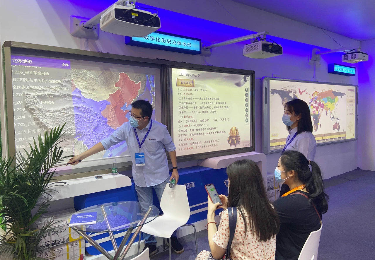 羿飛教育的展區(qū)位于N3館018號(hào),本屆展會(huì)為大家?guī)?lái)了多款升級(jí)新品,包括首次公開(kāi)亮相的第二代翰墨派書(shū)法教學(xué)系統(tǒng)、全新VR地理教學(xué)系統(tǒng)等。此外,羿飛教育繼續(xù)領(lǐng)跑數(shù)字化專用教室,多款明星產(chǎn)品也再次與大家見(jiàn)面,數(shù)字立體地形、數(shù)字化歷史沿革系統(tǒng)、AR地理沙盤(pán)……豐富的展項(xiàng),更優(yōu)的體驗(yàn),吸引了眾多參觀者駐足。